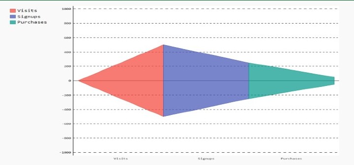 漏斗圖可用於確定`流程步驟`中客戶失去興趣的位置,然後改進這些步驟以提高轉化率。