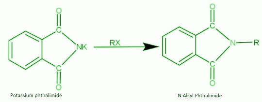 轉化反應:它與滷代烷反應生成N-取代的鄰苯二甲醯亞胺。