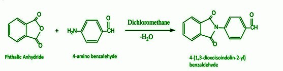 4-(1,3-二氧異吲哚-2-基)苯甲醛的合成:在4-氨基苯甲醛的溶液中,在二氯甲烷存在下逐滴加入鄰苯二甲酸酐,並在15-20oC下攪拌8小時。它形成了4-(1,3-二氧異吲哚-2-基)苯甲醛,其在醚中結晶。