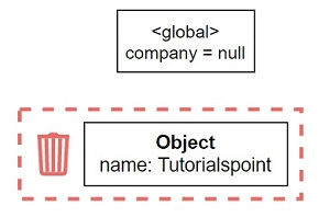 該圖描述了一個公司物件指向一個儲存名為“Tutorialspoint”的字串變數的物件。現在這個物件可以透過名為“company”的引用訪問。此時,如果我們將 company 設定為 **null**,則引用將丟失。