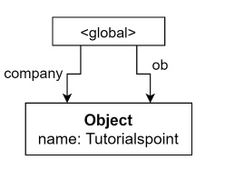 let company = { name: "Tutorialspoint" }; let ob = company;