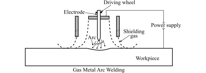 下圖顯示了氣體保護金屬弧焊工藝的簡化示意圖。