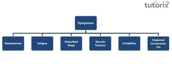 患有GAD的個體擔憂範圍很廣——學校、工作、與朋友和家人的關係、社互動動、分配的任務和世界大事等等。區分GAD和日常擔憂非常重要。一方面,GAD與難以控制並干擾個體心理社會功能的過度擔憂有關,而日常擔憂則被認為更容易管理,也不那麼過度。其次,與GAD相關的擔憂持續時間更長,而且更普遍存在、令人痛苦且與眾不同。此外,它們經常在沒有任何觸發因素的情況下發生。最後,日常擔憂通常伴隨著一些身體症狀,如煩躁不安或疲勞;但對於GAD,個體報告由於持續擔心生活的各個方面而感到主觀痛苦。