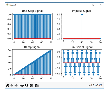 python 的高階庫用於透過提供基本輸入值來生成訊號。您可以使用上面建立的這些庫和函式生成和修改各種形式的離散時間訊號,以進行額外的訊號處理和分析。
