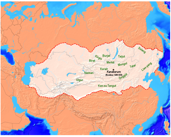 13世紀,中亞包括蔑兒乞、塔塔爾、克烈、蒙古和乃蠻等部落。