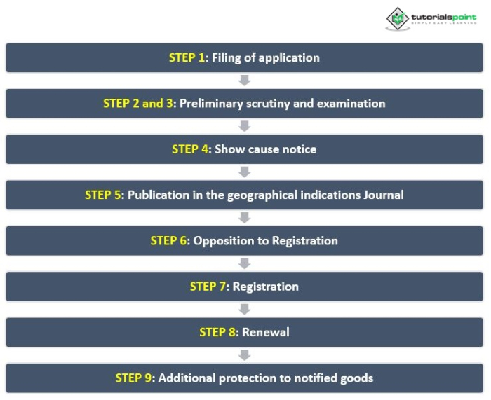 擁有特定種類農產品或本地製造產品的特定地理區域可以透過以下流程註冊為地理標誌。