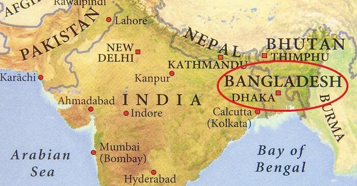 孟加拉國擁有多樣化的自然景觀,但有兩個方面尤其突出:一個經常遭受洪澇的大型三角洲平原,以及一個被湍急河流穿過的小型丘陵地區。孟加拉國東部與印度特里普拉邦和米佐拉姆邦接壤,西部和北部與西孟加拉邦和阿薩姆邦接壤,北部和東北部與梅加拉亞邦和西孟加拉邦接壤。其東南部與緬甸(緬甸)接壤。孟加拉國的最南部地區通向孟加拉灣。
