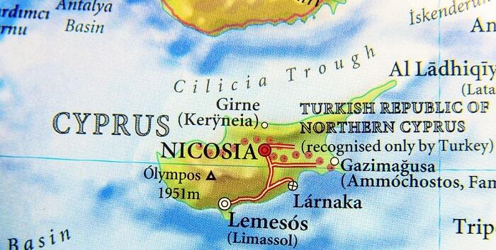 塞普勒斯位於地中海東部盆地,尼羅河三角洲以北 150 英里,土耳其以南 44 英里,敘利亞以西 64 英里。它位於歐洲、中東和非洲的交匯處,地理位置優越,方便前往這些地區。該島從東北到西南的最大長度為 142 英里,從北到南的最大寬度為 60 英里。面積為 3,572 平方英里,是地中海第三大島嶼,僅次於西西里島和撒丁島。塞普勒斯是一個崎嶇的島嶼,主體向東北伸出一個“把手”。其約 400 英里(640 公里)長的海岸線地形普遍呈凹凸不平的岩石狀,並擁有綿延的沙灘。