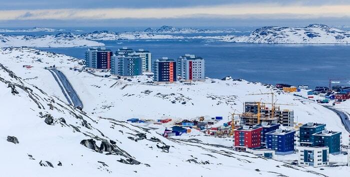 格陵蘭的地理特徵以其廣闊的冰蓋、崎嶇的海岸線、多樣化的野生動物和豐富的礦產資源為特點。這個丹麥領地比德克薩斯州大三倍多。格陵蘭最近的鄰國是加拿大的埃爾斯米爾島,位於其北部26公里(或16英里)處。該國最近的歐洲鄰國冰島位於其東南約321公里(約200英里)處。由於格陵蘭的三分之二位於北極圈內,所以該國全年氣溫寒冷。格陵蘭人在冬季面臨幾乎完全黑暗,氣溫降至零下30°F(約零下34°C),而在夏季則有24小時的陽光,氣溫僅達到約40°F(約4°C)。