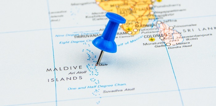 包括首都馬累(Male')在內的中部地區,位於斯里蘭卡西南約400英里(645公里)處,而最北端的環礁則位於印度半島南南西約370英里(600公里)處。