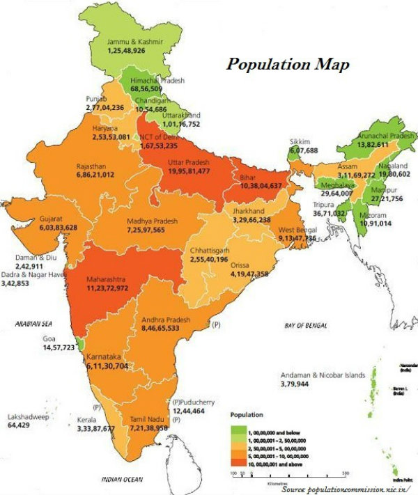 北方邦人口最多,其次是馬哈拉施特拉邦、比哈爾邦和西孟加拉邦。