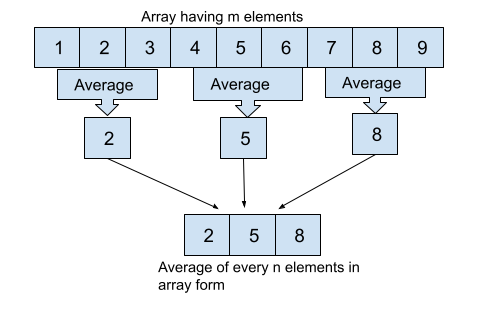 假設陣列中有6個元素,每組2個元素。現在分別計算每組的平均值。現在我們有了它們的平均值,可以將它們組合成一個數組。