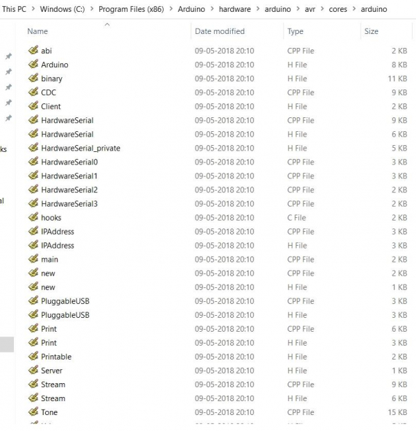 在這個資料夾中,你可以找到庫原始碼的幾個位置。Arduino核心檔案位於**\hardware\arduino\avr\cores\arduino**