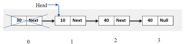 Input Linked list is: 30 10 40 40 After Deletion of 0th index node, Linked List is: 10 40 40