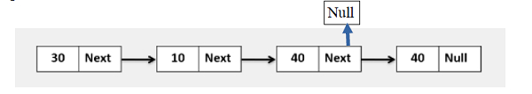 Input Linked list is: 30 10 40 40 After deleting last node of the linked list: 30 10 40