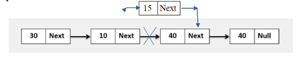 Input Linked list is: 30 10 40 40 Added node after 10th value node, Linked List is: 30 10 15 40 40