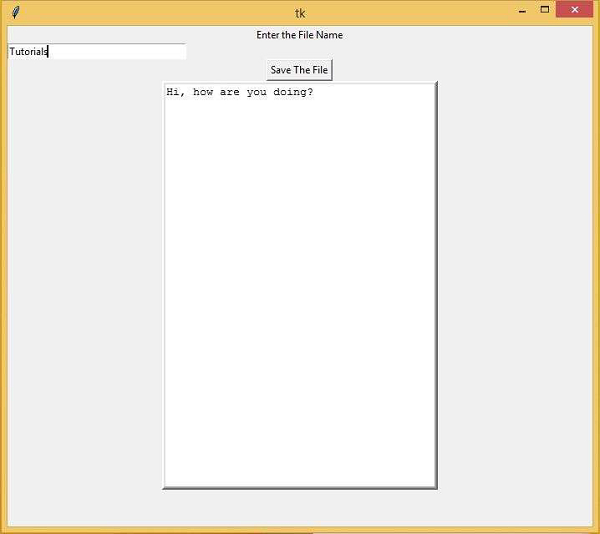 例如,我們有一個基於 GUI 的 tkinter 應用程式,它接收使用者輸入並將其以文字檔案的形式儲存在系統中。