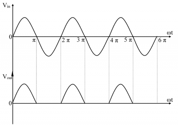 半波整流器電路允許交流電源波形的半個週期透過,並阻擋另一個半個週期。