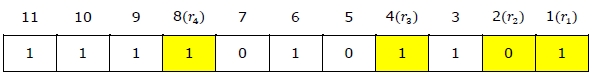 *r2* 是所有資料位的奇偶校驗位,其二進位制表示在從右起第 2 位包含 1,不包括 2(3、6、7、10、11 等)