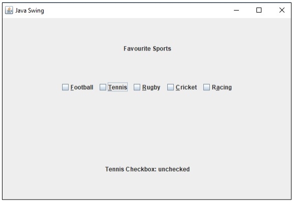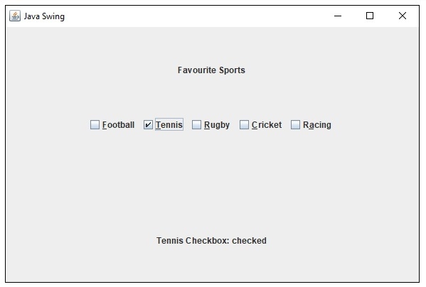 final JCheckBox checkBox2 = new JCheckBox("Tennis");