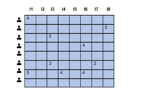 協同過濾的主要目標是聚合具有相似想法和共同選擇的使用者的評分或對產品/電影等的評論。透過收集基於使用者對產品/電影等的評分或評論的使用者級別資訊來實現這一點。因此,生成了一個使用者和專案評分矩陣。然而,大多數情況下,這個矩陣是高度稀疏的,可能高達99%。當出現新使用者時,另一個問題出現了,因為關於評分的資訊非常少。