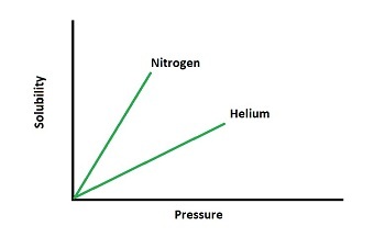 分壓的比較可以解釋這個過程,即氮氣的分壓比氦氣高。根據亨利定律,溶解度和分壓是相關的,因此氮氣的溶解度高於氦氣。這就是為什麼在潛水時氧氣瓶中使用氦氣的原因。
