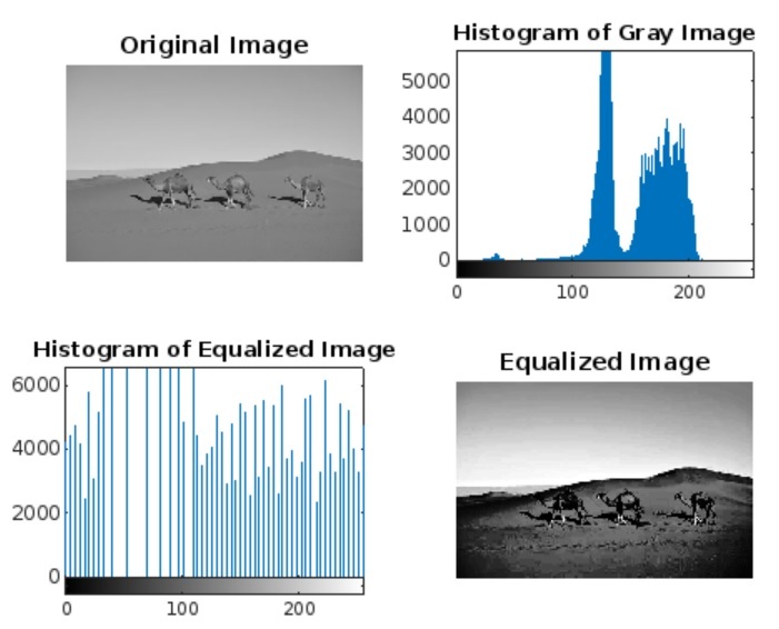 直方圖均衡化是一個全域性影像增強過程,因為它利用整個影像的直方圖來執行增強。