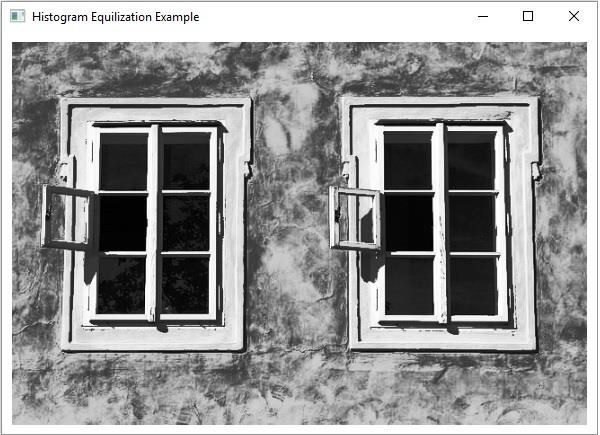 Imgproc 方法的 equalizeHist() 方法接受表示源影像和目標影像的 Mat 物件,均衡源矩陣的直方圖並將其接收在目標矩陣中。