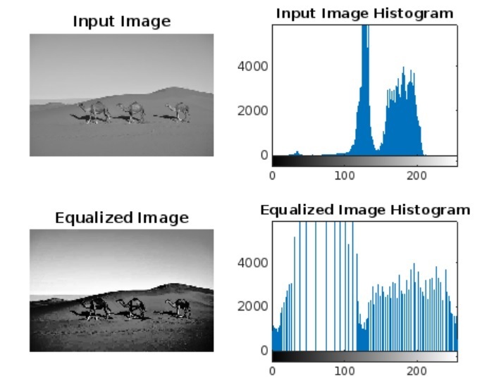 有時,在一幅影像中,畫素強度在一個特定區域較高,導致影像對比度差和視覺質量差。有一種稱為直方圖均衡化的技術可以重新分配影像的畫素強度,以獲得增強的影像。