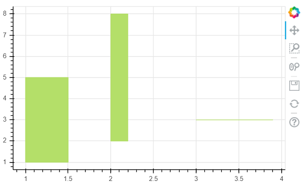 軸對齊矩形也稱為“四邊形”,可以透過使用“quad”函式(一個glyph函式)指定左、右、上和下位置來繪製。