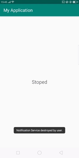 在以上結果中,服務已啟動,現在點選TextView,它將停止通知服務,如下所示 -