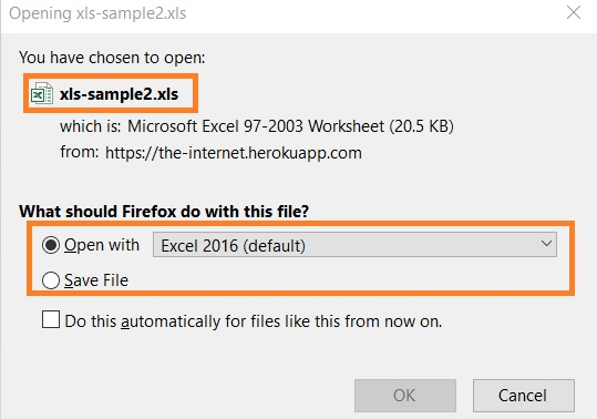 我們可以使用 Selenium 在點選事件中下載檔案。通常,點選下載連結時,會出現一個彈出框,其中包含檔名以及“開啟”和“儲存”選項。