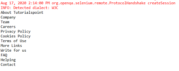 我們可以用 css 選擇器獲取所有元素的直接子元素。我們必須使用 findElements() 方法來獲取直接子元素。此方法將返回一個匹配 css 選擇器的元素列表。