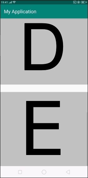 以上結果是初始螢幕,當您垂直滾動時,它將像下圖所示那樣滾動 -
