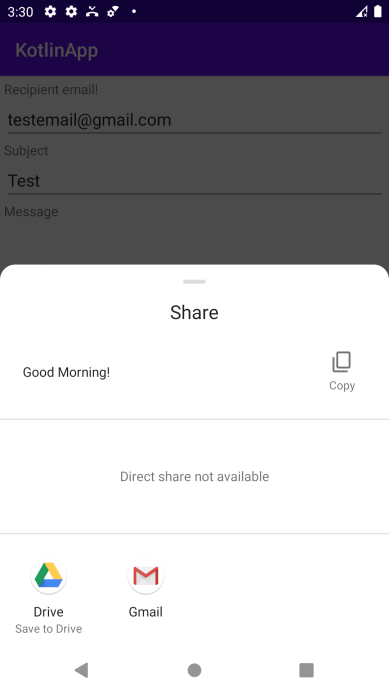 此示例演示如何使用Kotlin在我的Android應用程式中透過Gmail傳送電子郵件。