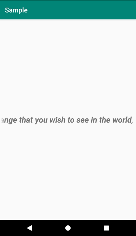 <?xml version="1.0" encoding="utf-8"?> <RelativeLayout xmlns:android="http://schemas.android.com/apk/res/android" xmlns:tools="http://schemas.android.com/tools" android:layout_width="match_parent" android:layout_height="match_parent" tools:context=".MainActivity"> <TextView android:padding="4dp" android:id="@+id/textMarquee" android:textSize="24sp" android:textStyle="bold|italic" android:layout_width="wrap_content" android:layout_height="wrap_content" android:layout_centerInParent="true" android:singleLine="true" android:ellipsize="marquee" android:marqueeRepeatLimit="marquee_forever" android:scrollHorizontally="true"/> </RelativeLayout>