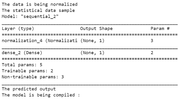應用線性變換 (y= mx + b),它將藉助密集層“layers.Dense”產生輸出。