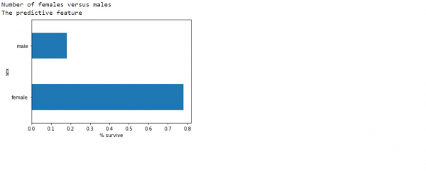 Tensorflow 可以與 Estimators 一起使用,藉助 'matplotlib' 庫和 'show' 方法來視覺化男性與女性數量的圖表。