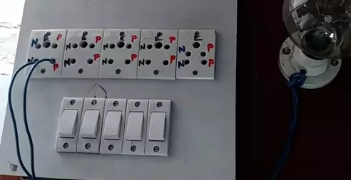取一個帶兩個導線的燈泡支架,即用於燈泡的正負極。現在將一根導線插入相線,另一根插入零線。燈泡亮起,表示電源已接通。