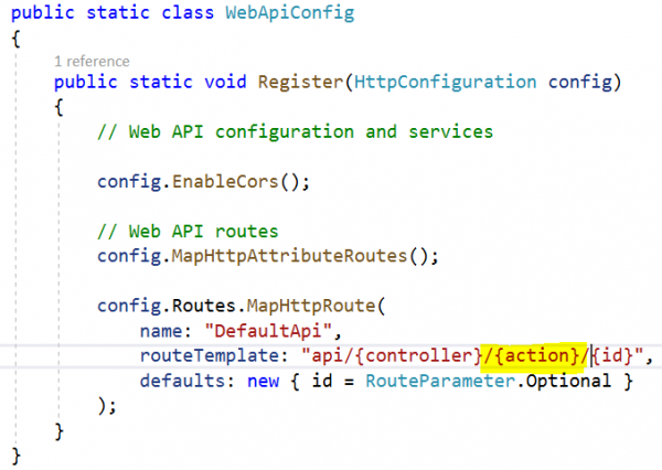 使用**ActionName**屬性可以為Action方法提供別名。還需要更改WebApiConfig.cs中的路由模板。