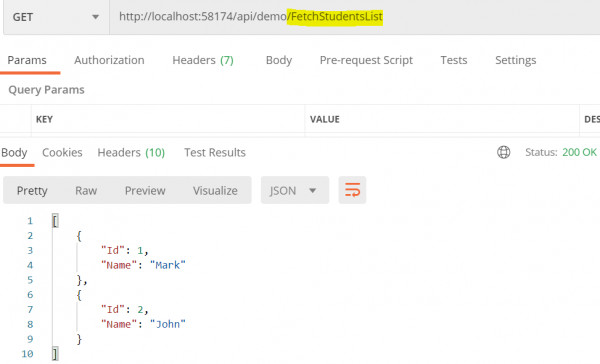 }現在我們可以使用**FetchStudentsList**(別名)呼叫Get()方法。