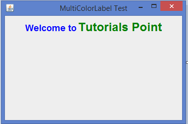 JLabel label = new JLabel("<html><font size='5' color=blue> Welcome to</font> <font size='6'color=green> Tutorials Point</font></html>");