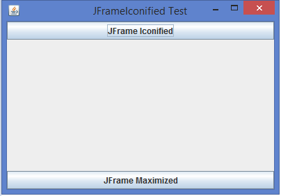 在上面的程式中,如果我們單擊 “JFrame Iconified”(JFrame 圖示化)按鈕,則該框架被最小化,如果單擊 “JFrame Maximized”(JFrame 最大化)按鈕,則該框架被最大化。