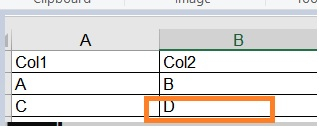 讓我們讀取第三行第二列的值,該值如以下名為 Data.xlsx 的 Excel 工作簿所示為 D −