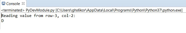 print("Reading value from row-3, col-2: ")