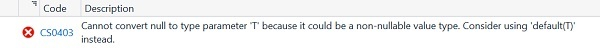 而且,我們不能像在普通方法中那樣簡單地從泛型方法返回 null。以下是我們嘗試返回 null 時泛型方法將丟擲的錯誤。