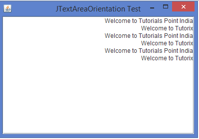 JTextArea 是 JTextComponent 類的子類,它是一種多行文字元件,用於顯示文字或允許使用者輸入文字。當我們嘗試實現 JTextArea 的功能時,JTextArea 可以生成一個 CaretListener 介面。預設情況下,JTextarea 允許從左到右的方向,如果使用者想要使用 JTextArea 類的 setComponentOrientation(ComponentOrientation.RIGHT_TO_LEFT) 方法,從右到左輸入文字。
