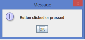 JOptionPane.showMessageDialog(null, ("Button clicked or pressed"));
