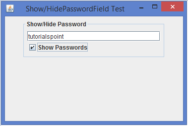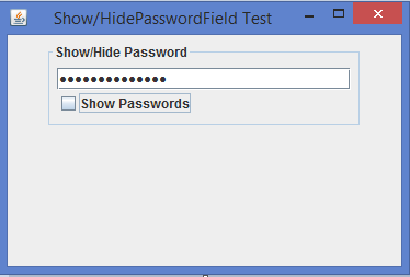 JFrame frame = new JFrame("Show/HidePasswordField Test");