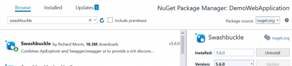 在我們的應用程式中,使用 Manage Nuget 包安裝 swagger。